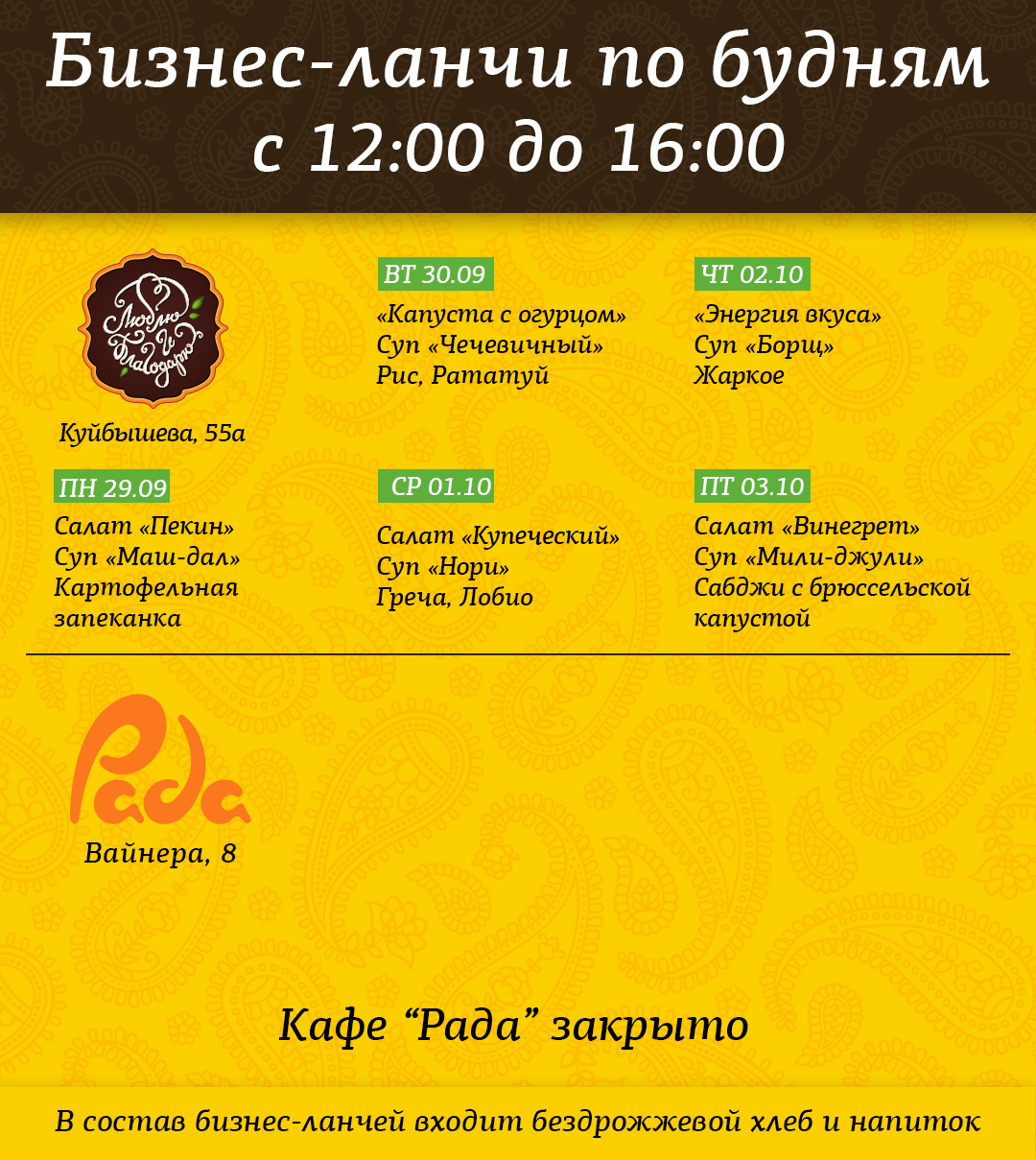 Мы гордимся нашим опытом и знанием вегетарианской и веганской кухни, ведь мы первые, кто вывел блюда этого рациона на уровень общепита на Урале.