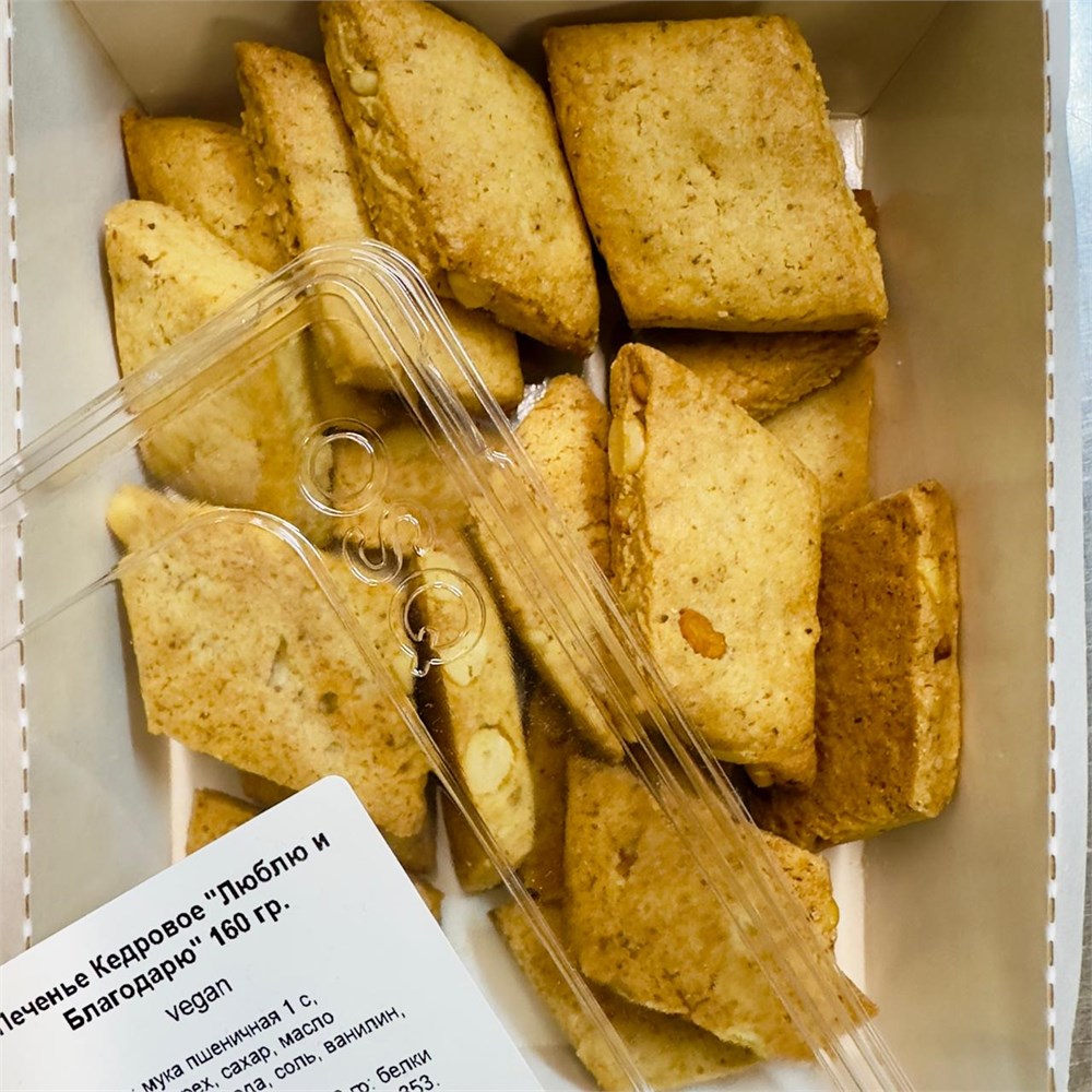 Состав: мука пшеничная 1с, кедровый орех, сахар, масло растительное, сода, соль, ванилин, имбирь.