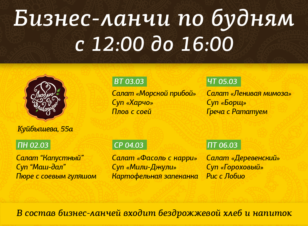 Мы гордимся нашим опытом и знанием вегетарианской и веганской кухни, ведь мы первые, кто вывел блюда этого рациона на уровень общепита на Урале.